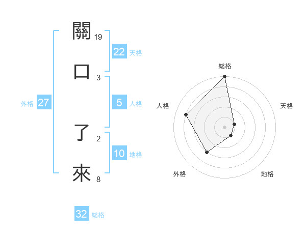 關口 了來さんの総格は32画の5点!