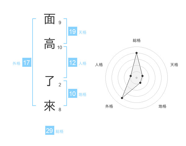 面高 了來さんの天格は19画の1点!