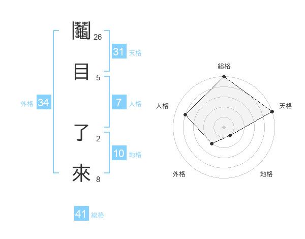 鬮目 了來さんを姓名の画数から五運を鑑定