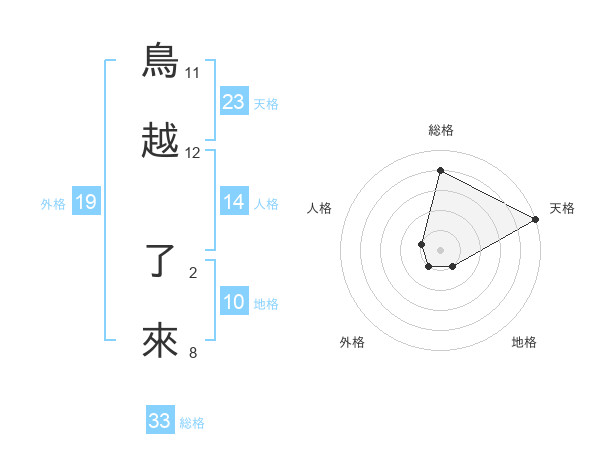 鳥越 了來さんの総格は33画の4点!