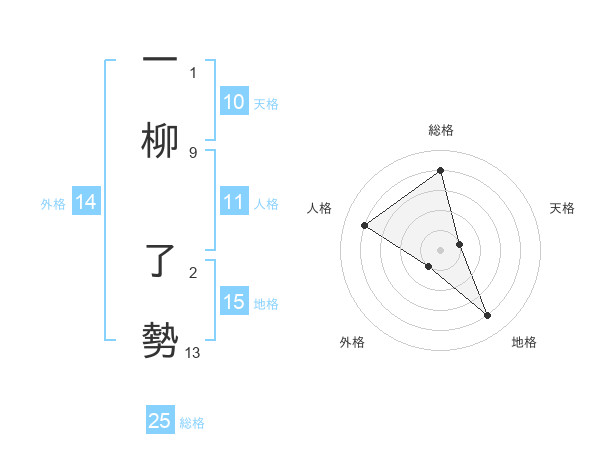 一柳 了勢さんを姓名の画数から五運を鑑定