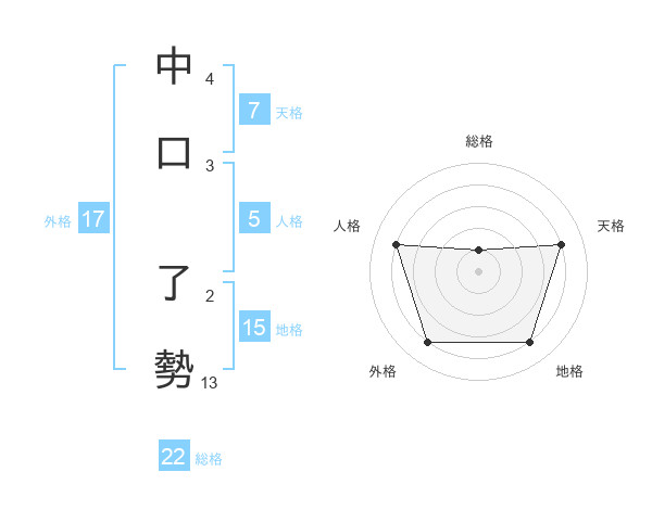 中口 了勢さんの外格は17画の4点!