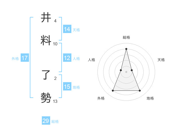 井料 了勢さんの総格は29画の4点!