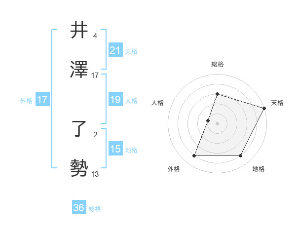 井澤 了勢さんの天格は21画の5点!