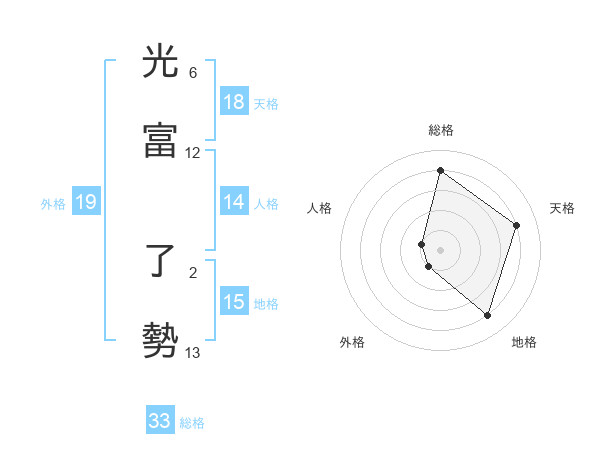 光富 了勢さんの総格は33画の4点!