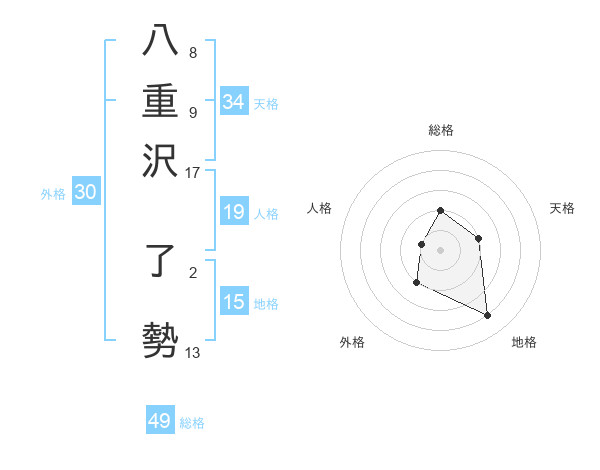 八重沢 了勢さんの総格は49画の2点!