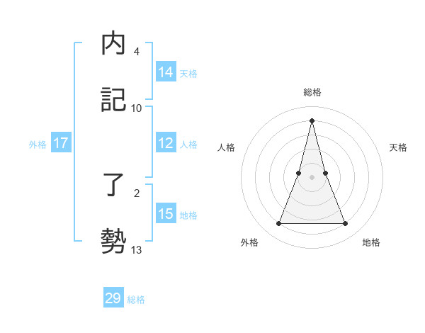 内記 了勢さんの総格は29画の4点!