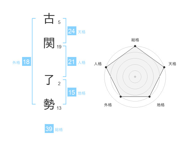 古関 了勢さんの総格は39画の5点!