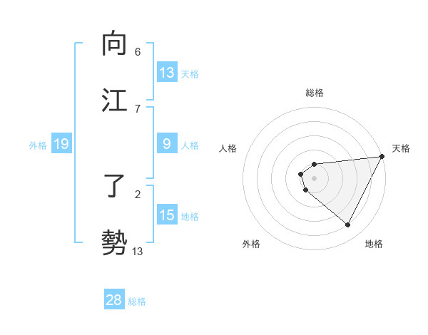 向江 了勢さんの総格は28画の1点!