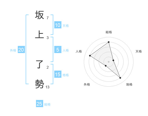 坂上 了勢さんを姓名の画数から五運を鑑定