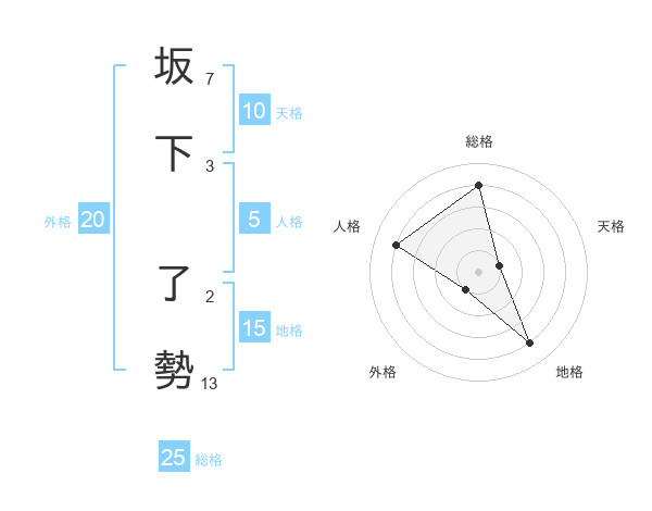 坂下 了勢さんを姓名の画数から五運を鑑定
