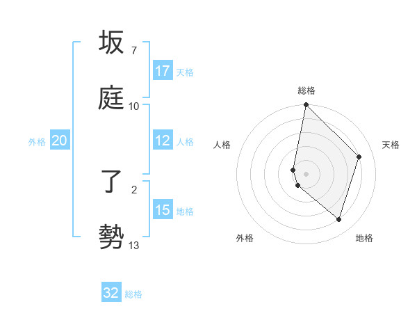 坂庭 了勢さんを姓名の画数から五運を鑑定