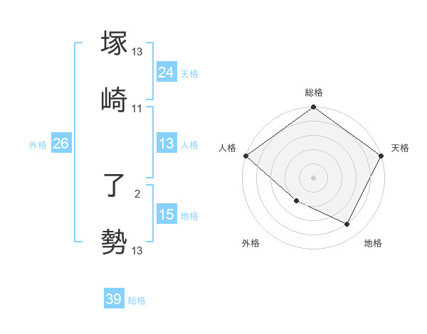 塚崎 了勢さんを姓名の画数から五運を鑑定
