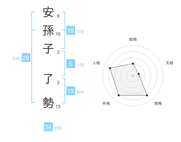 安孫子 了勢さんの総格は34画の2点!