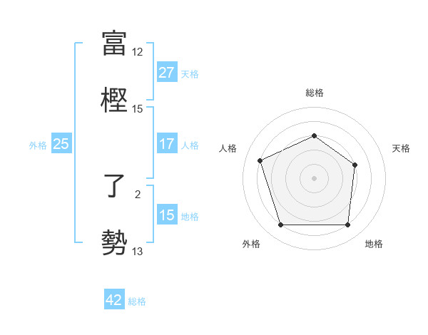 富樫 了勢さんを姓名の画数から五運を鑑定