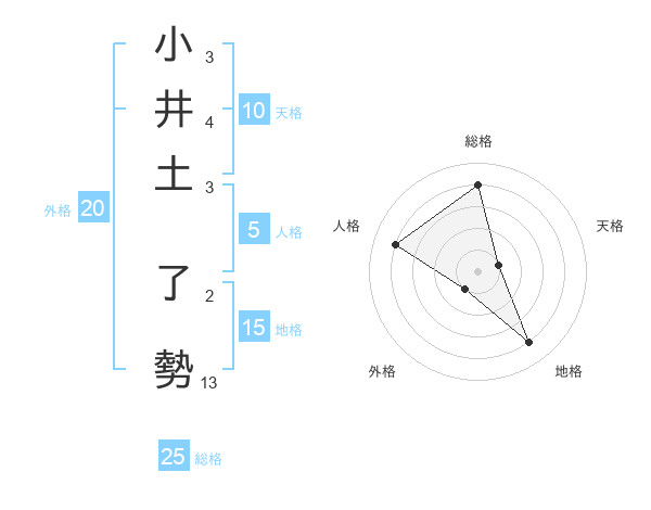 小井土 了勢さんを姓名の画数から五運を鑑定