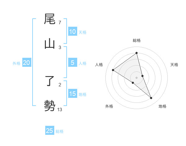 尾山 了勢さんを姓名の画数から五運を鑑定