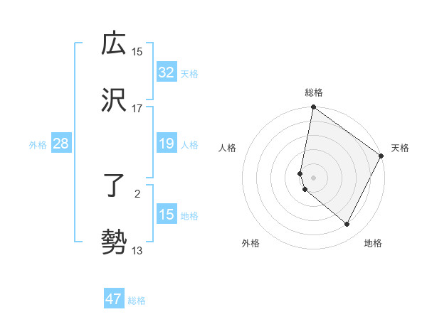 広沢 了勢さんを姓名の画数から五運を鑑定