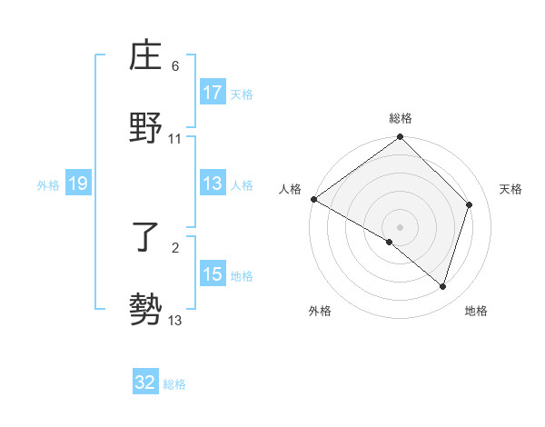 庄野 了勢さんの総格は32画の5点!