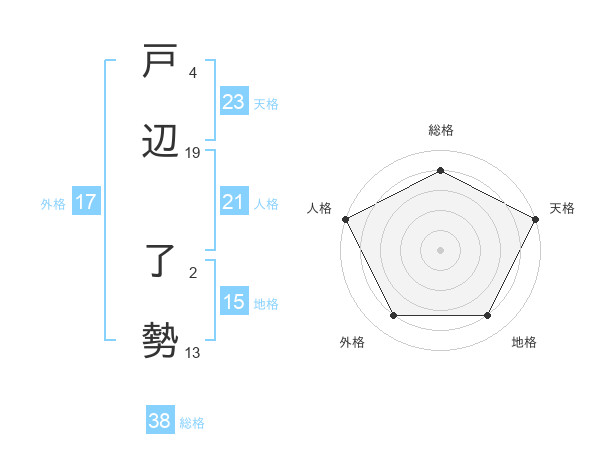 戸辺 了勢さんを姓名の画数から五運を鑑定