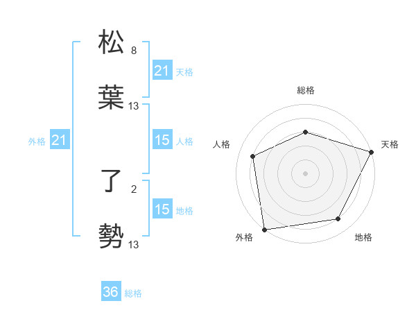 松葉 了勢さんを姓名の画数から五運を鑑定