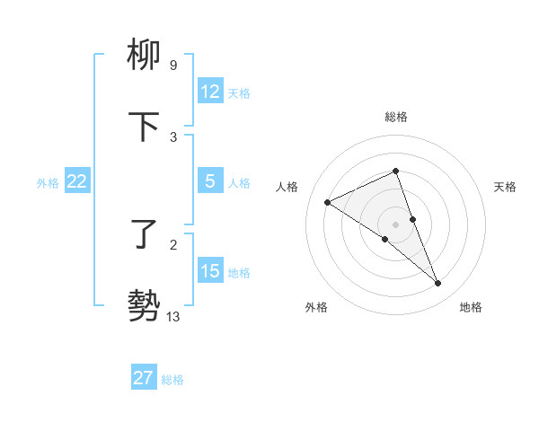 柳下 了勢さんを姓名の画数から五運を鑑定