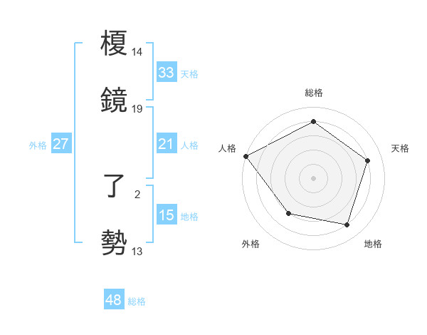 榎鏡 了勢さんを姓名の画数から五運を鑑定