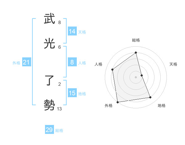 武光 了勢さんの外格は21画の5点!