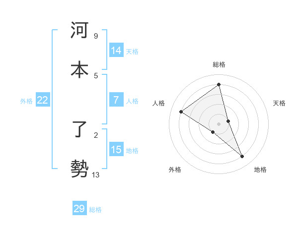 河本 了勢さんの総格は29画の4点!