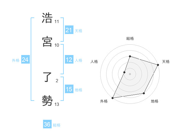 浩宮 了勢さんの天格は21画の5点!