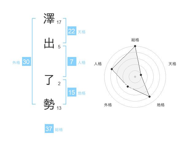 澤出 了勢さんを姓名の画数から五運を鑑定