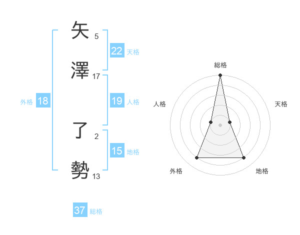 矢澤 了勢さんを姓名の画数から五運を鑑定