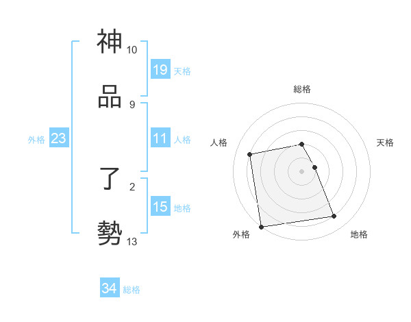 神品 了勢さんの外格は23画の5点!