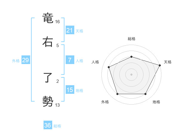 竜右 了勢さんを姓名の画数から五運を鑑定