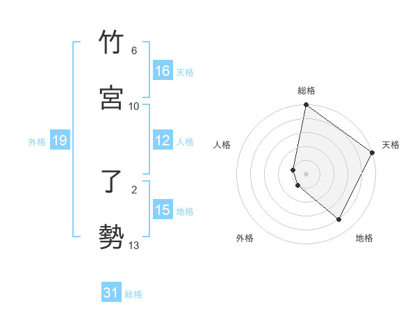 竹宮 了勢さんの総格は31画の5点!