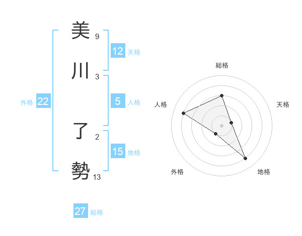 美川 了勢さんの総格は27画の3点!