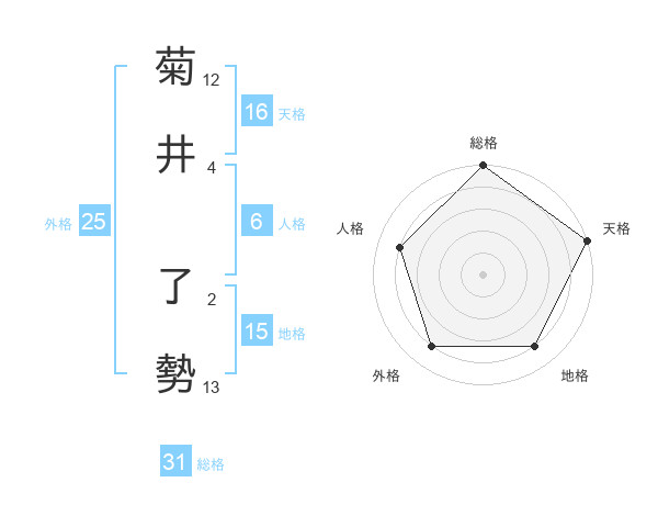 菊井 了勢さんの総格は31画の5点!