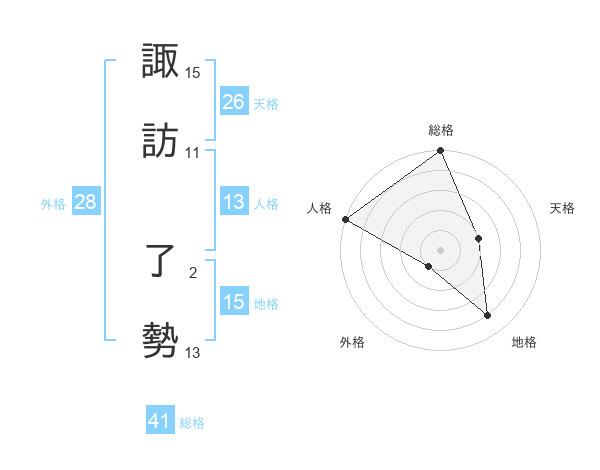 諏訪 了勢さんの総格は41画の5点!