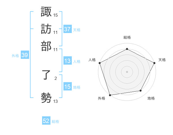 諏訪部 了勢さんを姓名の画数から五運を鑑定