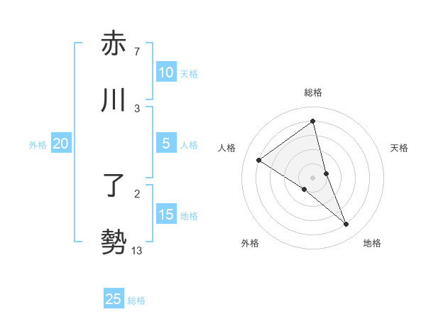 赤川 了勢さんの総格は25画の4点!