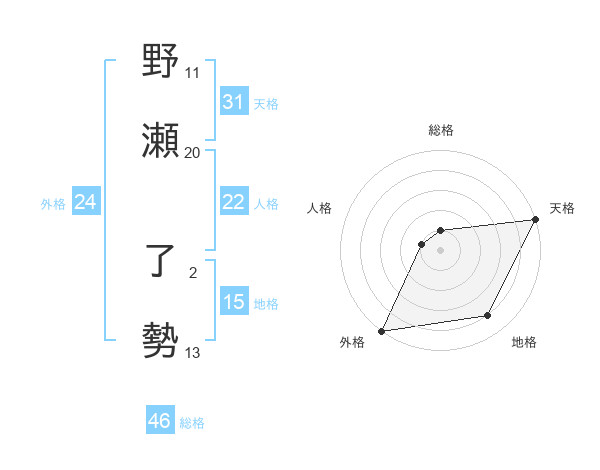 野瀬 了勢さんの天格は31画の5点!