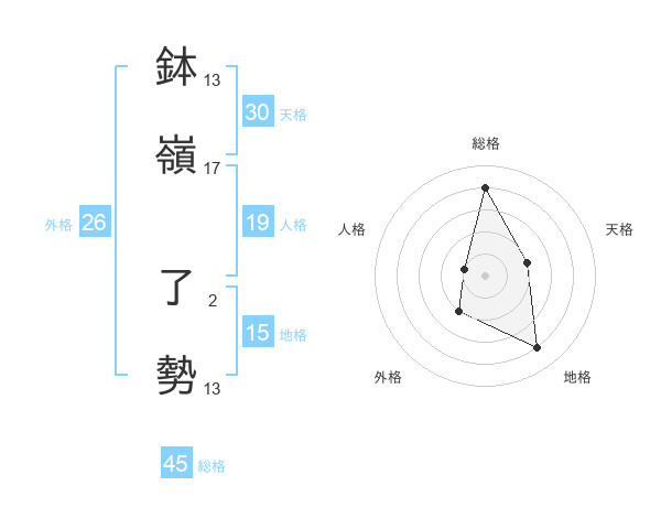 鉢嶺 了勢さんの総格は45画の4点!