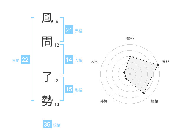 風間 了勢さんの外格は22画の1点!