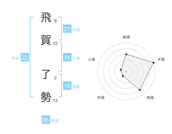 飛賀 了勢さんを姓名の画数から五運を鑑定
