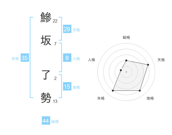 鰺坂 了勢さんの総格は44画の2点!