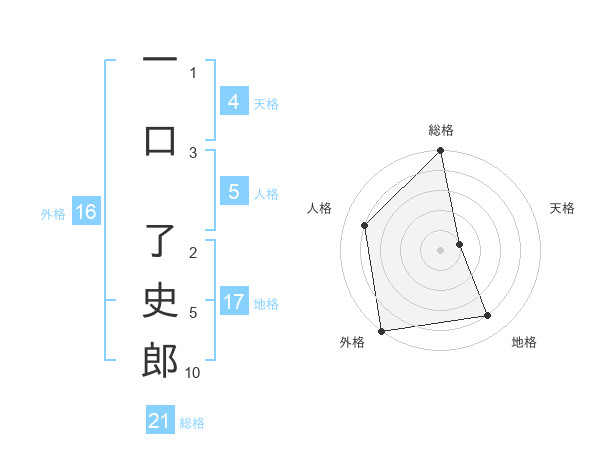 一口 了史郎さんを姓名の画数から五運を鑑定