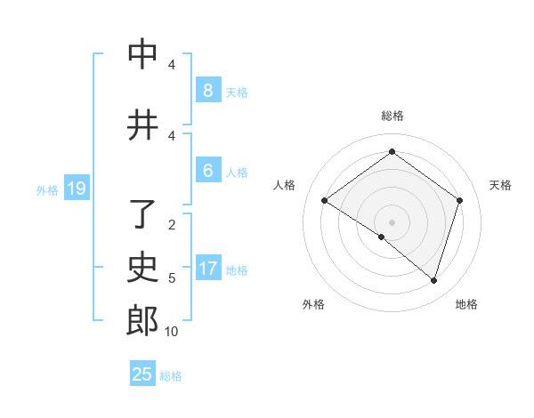 中井 了史郎さんの総格は25画の4点!