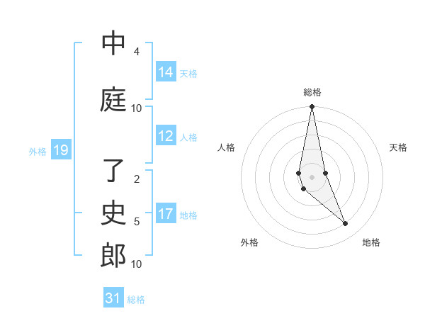 中庭 了史郎さんを姓名の画数から五運を鑑定