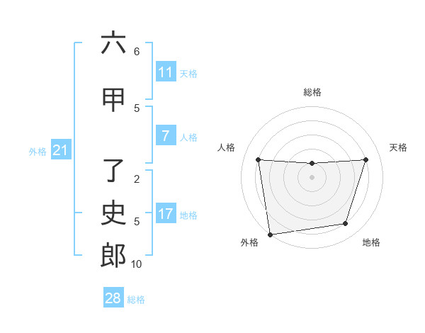 六甲 了史郎さんを姓名の画数から五運を鑑定