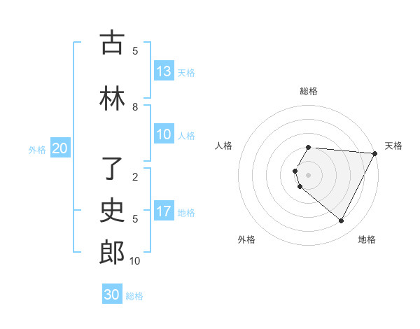 古林 了史郎さんを姓名の画数から五運を鑑定